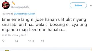 " Mali ka nman tlaga Jose! May kilala akong guy kpag cnabi nya ginagawa nya, na nagiipontlaga para sa future nla ng girl. May paninindigan"